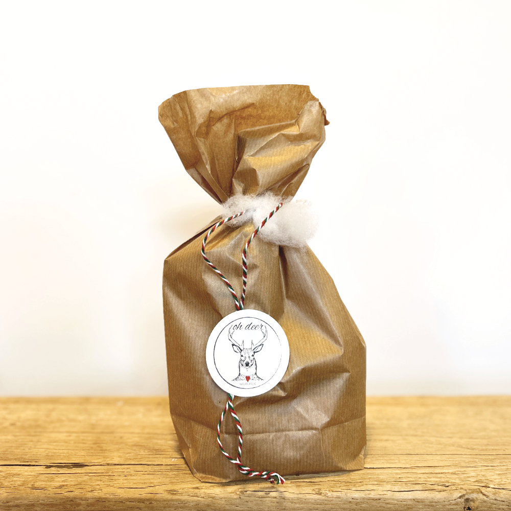 in Naturpapier als weihnachtliches Geschenk verpackt