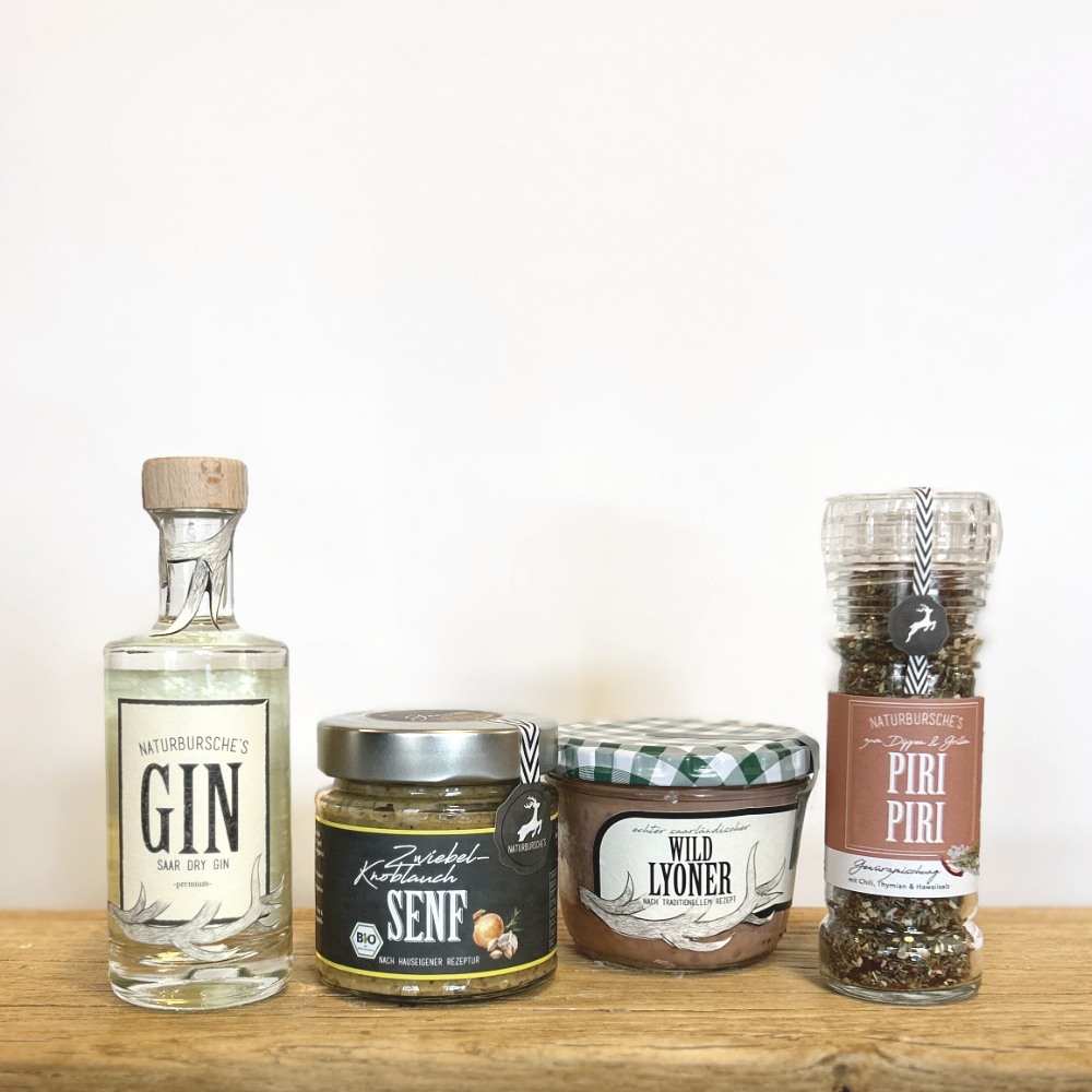Wilder Lyoner trifft auf würzigen Zwiebel-Knoblauch Senf und Piri Piri aus der Gewürzmühle – plus unserem Mini Gin!